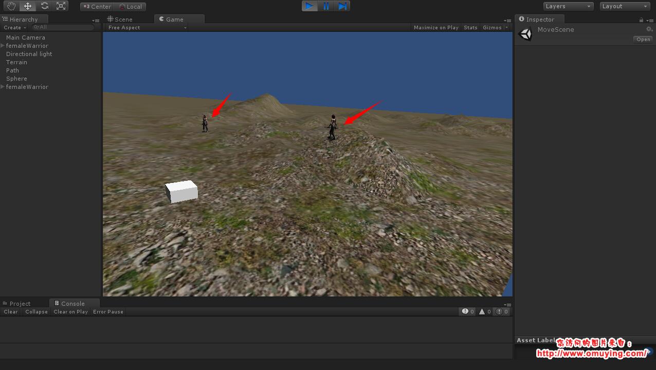 场景中有两个角色,然后他们会在 ITweenPath 绘制的线上随机移动!下面我们先搭建好测试的场景,如下图: