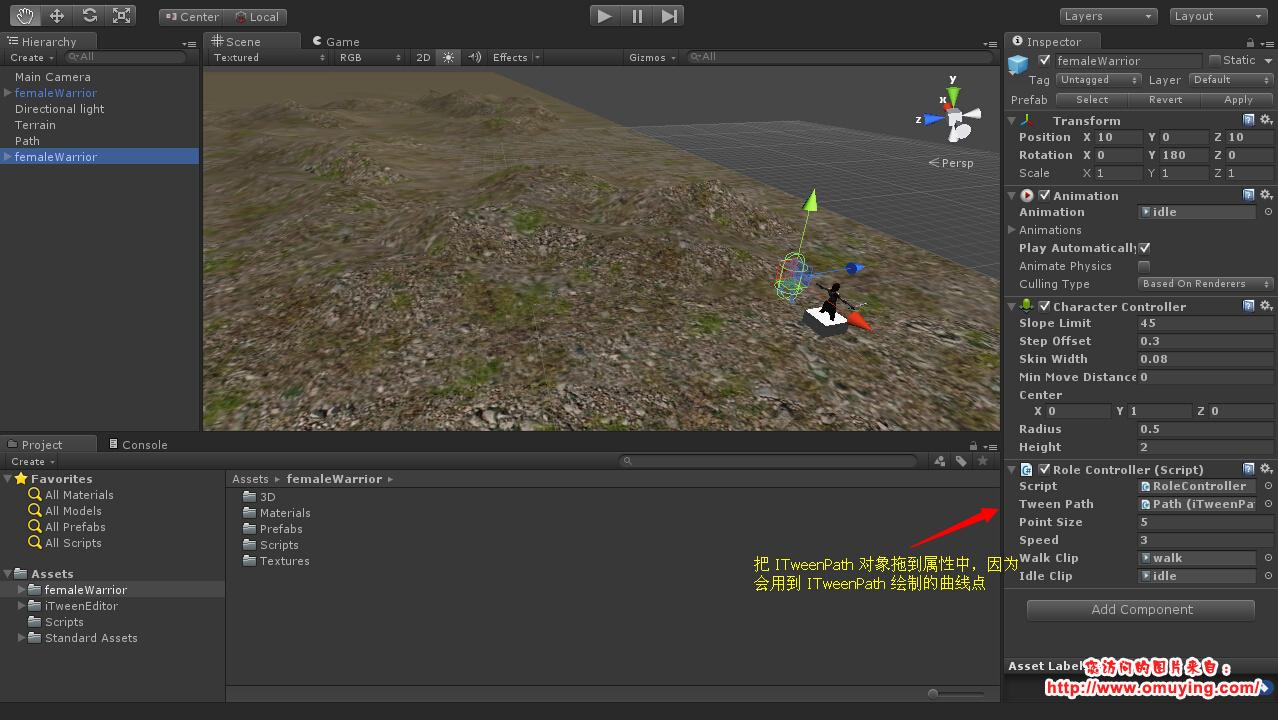 为了丰富我们的游戏,我们经常会给游戏中的角色(怪物)添加行走路线,本想用 ITweenPath 插件实现,但是一直没有找到合适的办法,因为不知道如何实现实行的获得地形高度,或者如果使用角色控制器移动(CharacterController),怎么使用 ITweenPath 驱动?本人愚笨,自己实现了个(这儿只是使用 ITweenPath 绘制出来的点),也算抛砖引玉,如果读者知道如何更简单的实现方式,还请告之!共同进步!
