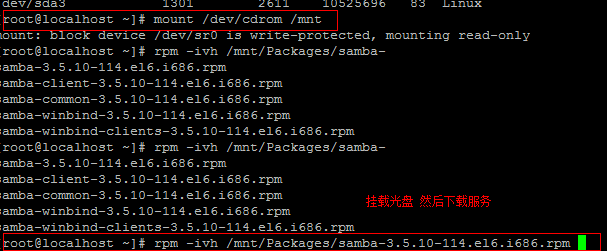 首先挂载光盘安装Samba然后配置ip地址