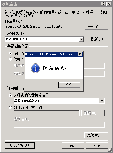 在vs2013里利用向导SqlDataSource配置数据库连接时,点击测试连接提示成功,当点击确定时报错:
