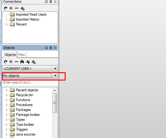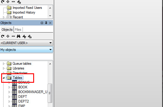 3、在对象浏览器选择“my object”,这里边就是SCOTT(当前登陆的用户的所有object)