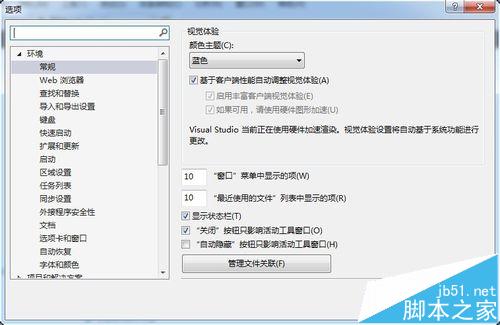 3、打开选项界面,可以看到选项界面可以进行多种设置。