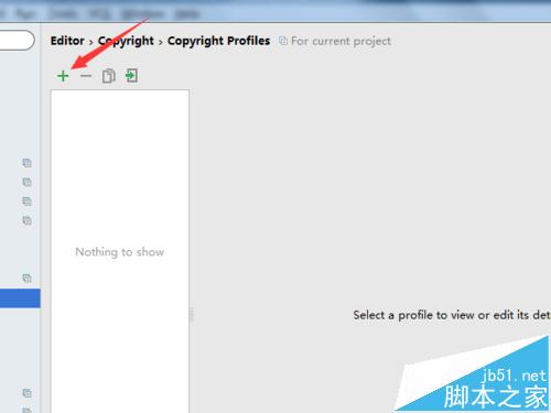4、弹出了copyright profiles界面中,进行创建配置版权信息,点击“+”创建。