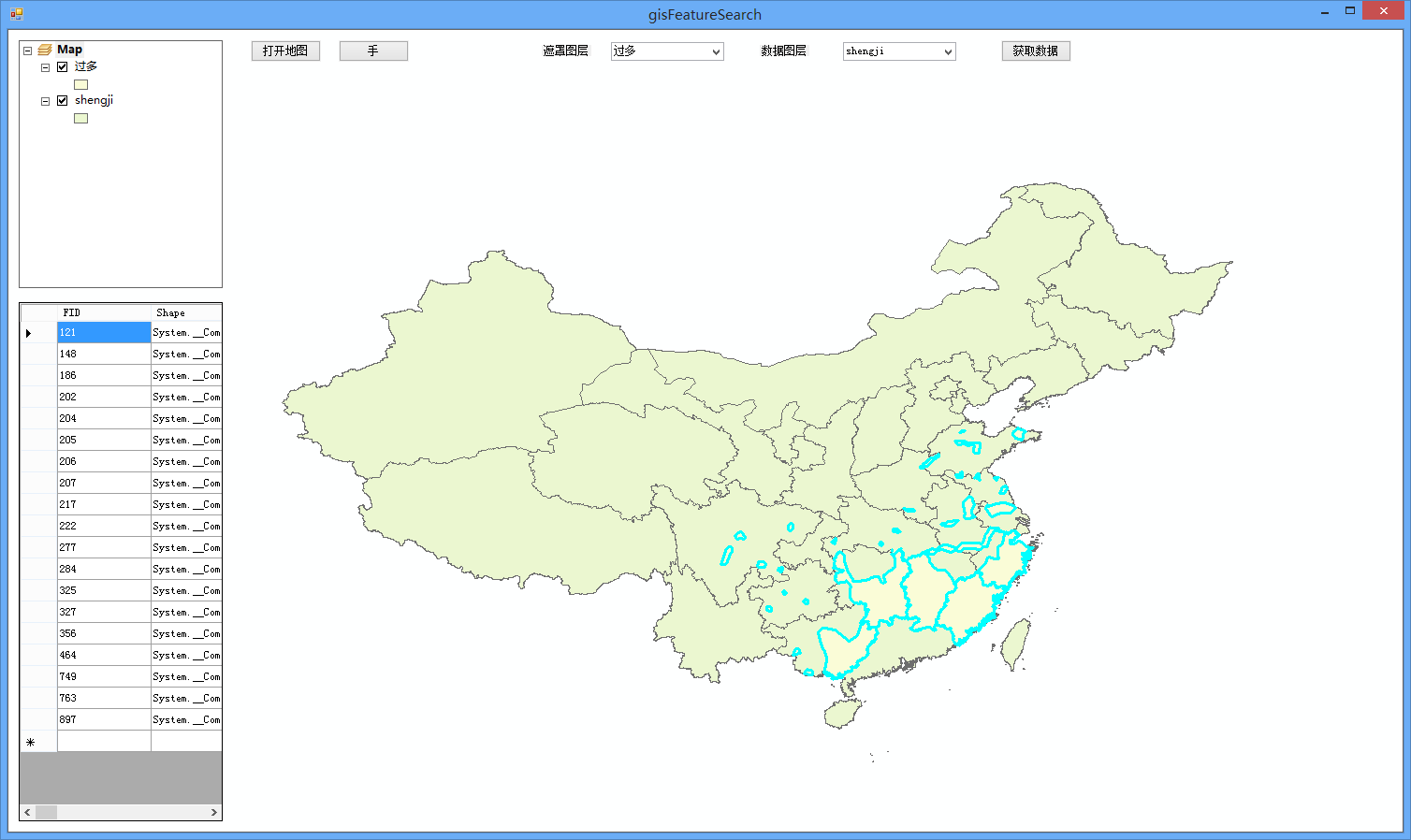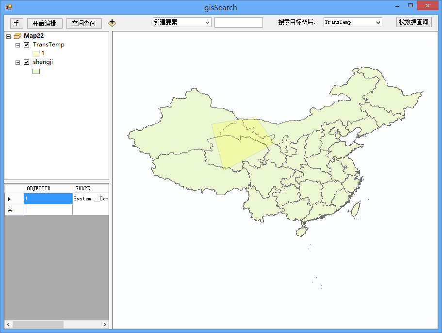 开发原理:使用内置的字段搜索功能搜索要素,通过新建多边形进行重叠要素查询(空间查询,也可选用其他空间)。