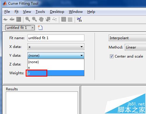 3、在这个拟合工具窗口的左边,选择变量,即分别选择x,y。