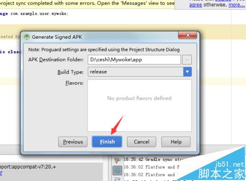 6、进入到这个界面中选择apk生成保存的位置,然后在build type中选择release的选项,然后点击“Finish”的选项,这样就生成到apk的保存路径中。