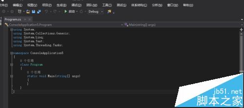注意事项:当经行程序编写前一定要检查右边面版是否为c#模版。