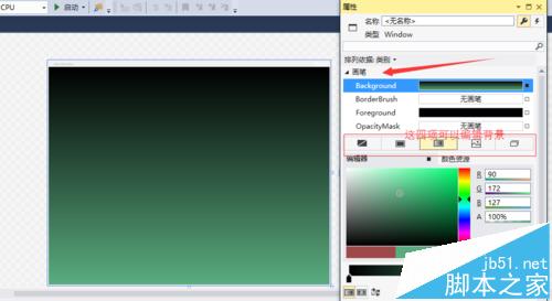 3、我们要更换的背景简单的就是VS2015系统自带的背景图片。在视图——属性窗口中调图窗体程序的属性,在属性的画笔栏中可以更改窗体程序的背景。
