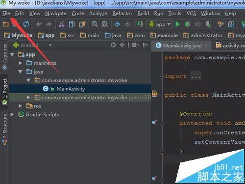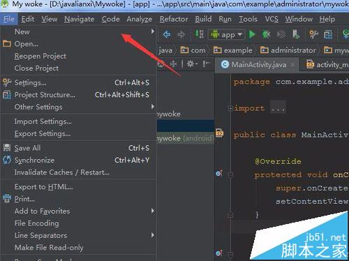 2、进行点击Android studio软件菜单的“file”的选项。