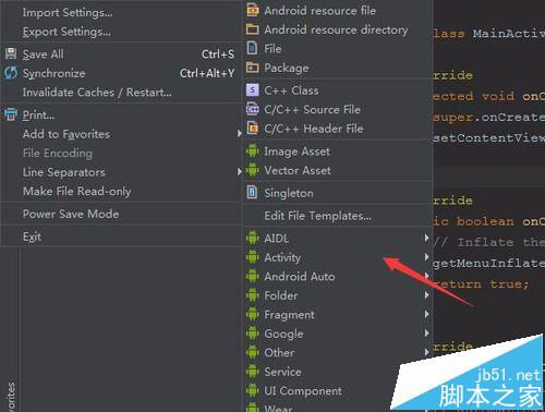 4、点击完new的选项,就会弹出了下一级的菜单中进行选择一个为“activity”的选项。