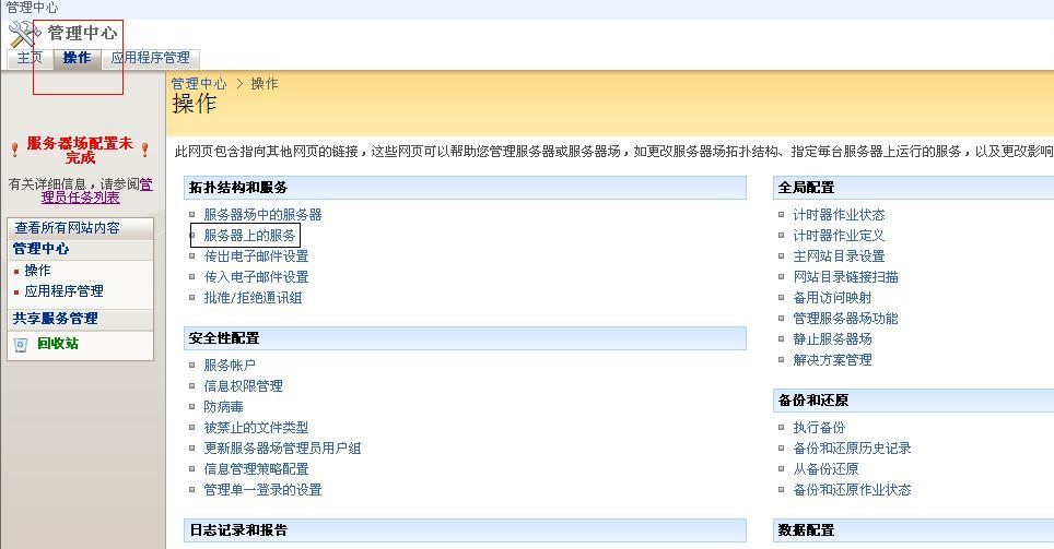 点击操作,选择“服务器上的服务”: