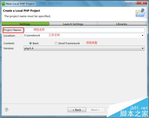 1、打开zend studio,在左侧的空白区域右键--new--project,在弹出的窗口中选择local php project---next,填写自己的项目名称,选择工作空间,我这里使用默认的,项目类型:基本的还有zend framework框架型项目,然后选择php版本,next;