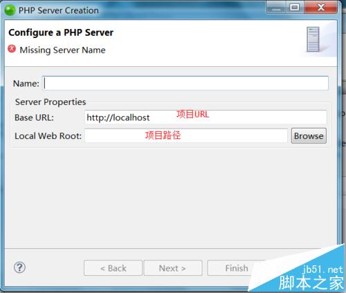 2、择Launch URL,选择host,可以使用默认的localhost,也可以自定义:下拉框--new server--填写host name--url--选择本机项目路径--finish;