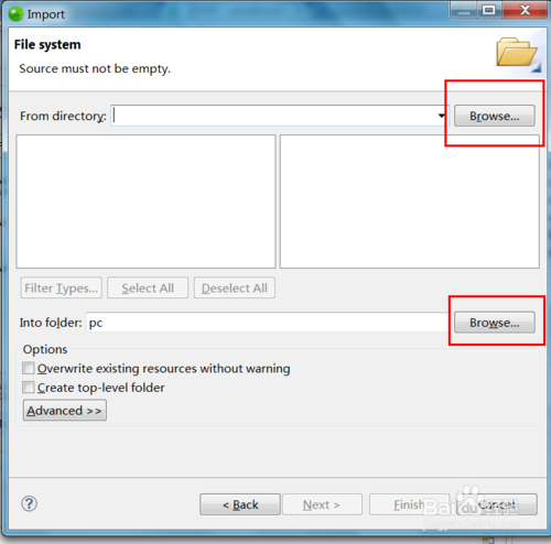 5、击上边的Browse..按钮选择的项目工程文件路径,在左边的窗口中的checkbox选中(我这里忘记截图了...),然后确认文件是否全部选中,完成之后点击Next;