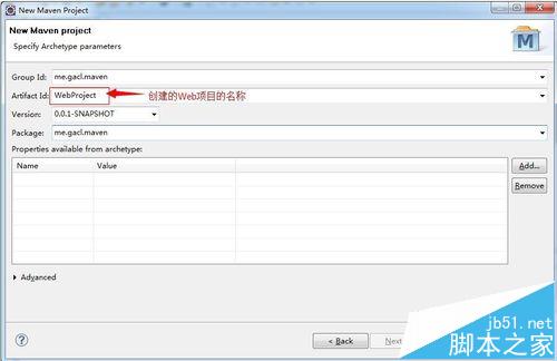 5、Group ID一般写大项目名称。Artifact ID是子项目名称。例如Spring的web包,Group ID:org.springframework,artifactId:spring-web。Package是默认给你建一个包,不写也可以。如下图所示: