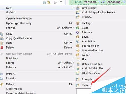 1、在eclipse中已经创建好的java的项目中,进行选中该项目之后,进行右键的方式弹出进行选择“new”选项。