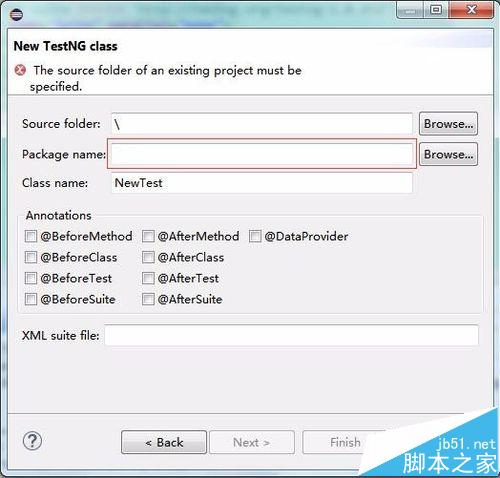 4、然后就会弹出了一个new testng class的选项,进行再package name中进行输入class文件名。