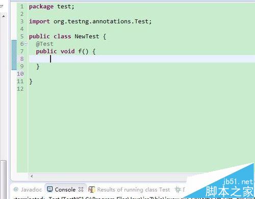 5、创建完成之后,进行打开文件的class的文件,可以看是java代码中就为一个测试类,一个测试类的模板。