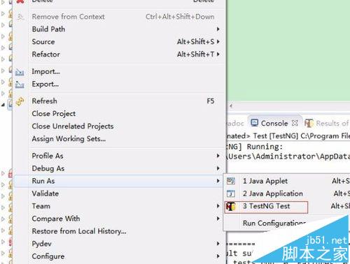 6、可以通过执行testng的测试类,选中整个的项目,进行右键的方式,弹出了一个下拉中进行选择为“Run As”选中,在次选择为TestNG Test的选项。
