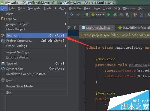 1、要进行Android studio的快捷键的设置之后,那么就需要的打开电脑中安装好的Android studio的软甲,然后进行打开菜单中file的文件,弹出了下拉的菜单中的setting的菜单。
