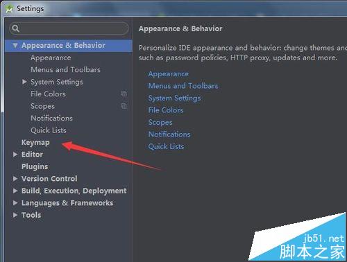 2、然后就进入到了setting的选项中,进行点击列表中的keymap的选项。