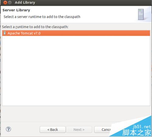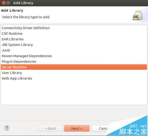 4、下面对项目直接添加tomcat的库,点击右边的add Library,然后选择Server Runtime,选择tomcat那个,点击完成。