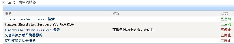 点击“开始”后,就可以开启Office SharePoint Server搜索,这里要注意的是,用户名需要写成:域名+用户名的形式。否则启动服务时就会出错。开启成功后会自动返回服务器上的服务界面: