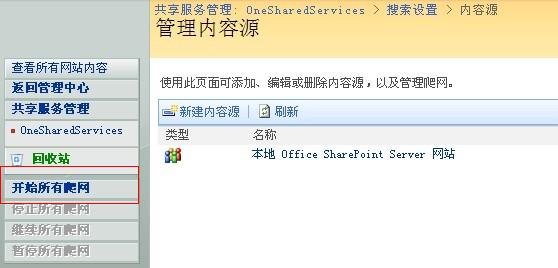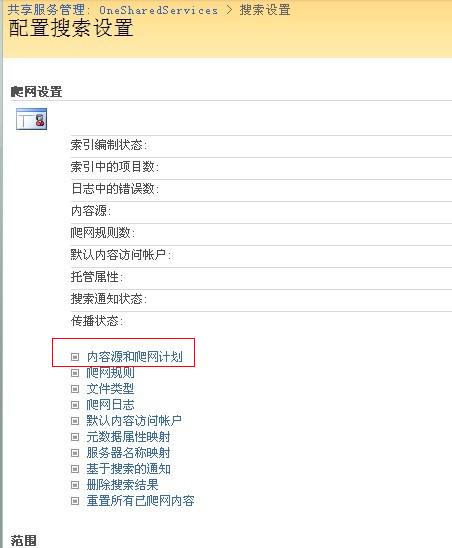 进入“内容源和爬网计划”,这里就可以指定我们要爬行的数据源: