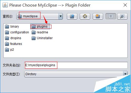 4)选择你的安装目录/myeclipse/plusgin 目录 。(其他版本的MyEclipse的plusgin文件夹路径是/myeclipse/Common/plusgin )