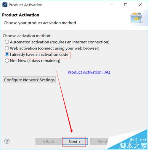 8、在弹出的窗口中,选择 I already have an activation code。点击Next。