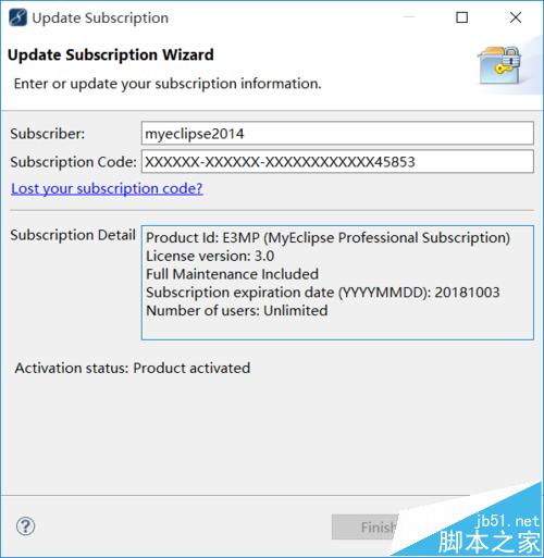 10、再次打开MyEclipse‐-->Subscription Information,Product activation must be completed within * days的提示就消失了,注册成功。如果帮到你,请投我一票。
