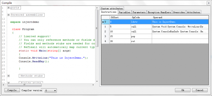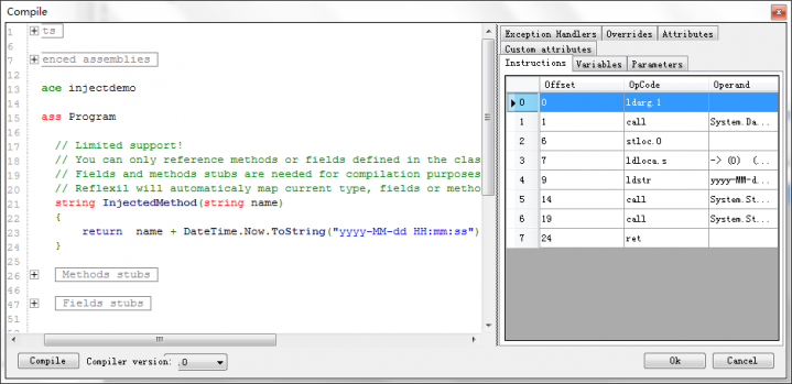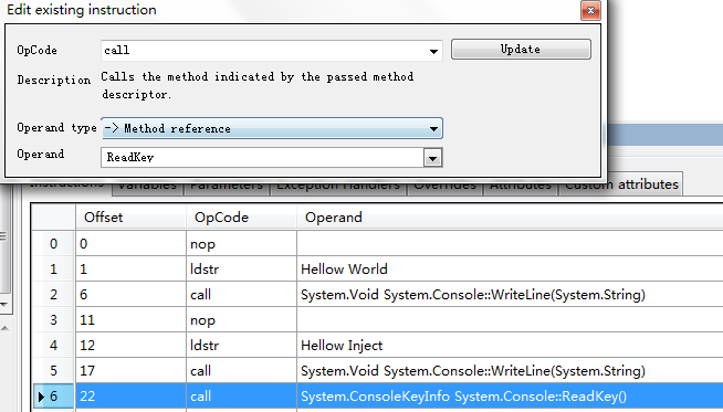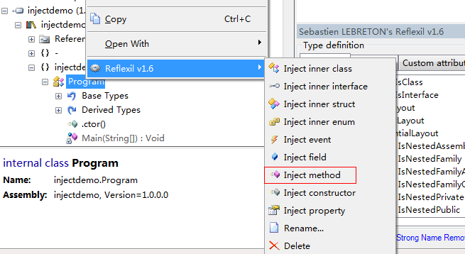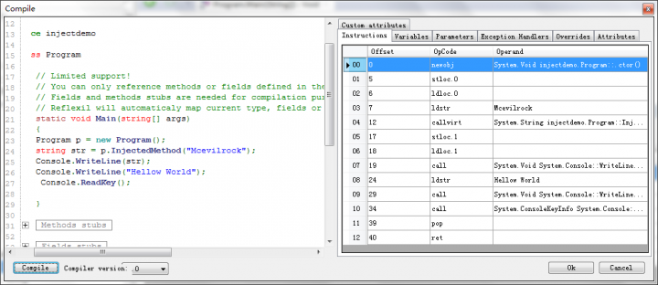 PS: 如果是替换代码的话,先更改injectmethod时不用实现main方法,只需要修改injectmethod()方法,然后再去修改Main方法.调用时因为injectmethod方法不是static所以需要实例化Program