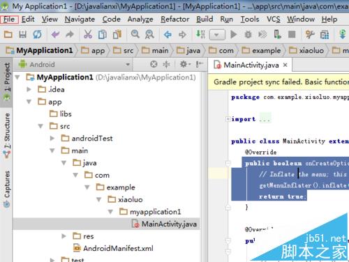 1、进行打开电脑中的Android studio的选项上菜单中的“file”的选项。