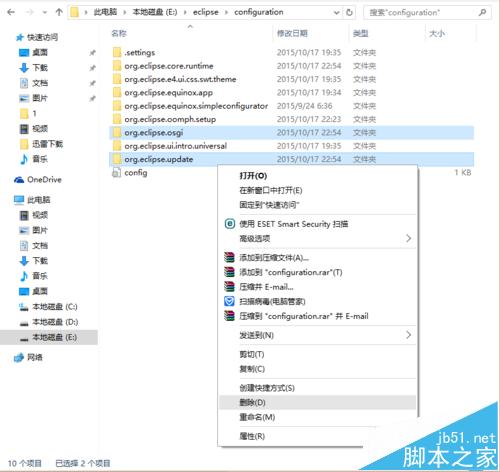2、打开Eclipse安装目录(本人是把它安装在E:\Eclipse目录下)下的configuration目录,删除org.eclipse.update和org.eclipse.osgi这两个文件夹,再启动Eclipse就会发现问题解决了