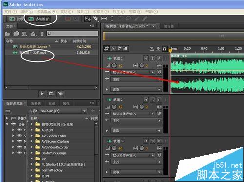5、在多轨界面双击刚才拖到轨道上的音乐,如图。