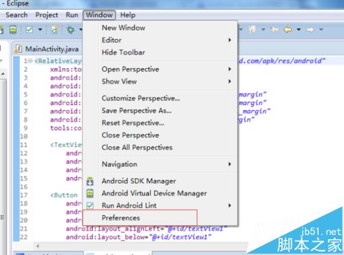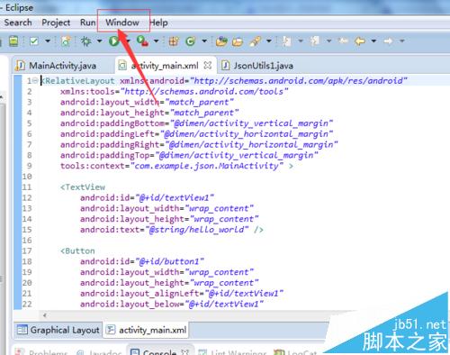 1、在进行使用eclipse中对代码上开发,使用”alt+/“快捷键后,在代码中就会自动提示,那在快捷键上冲突,及自己的习惯对快捷键上修改,进行点击eclipse中菜单中的“window”的选项。
