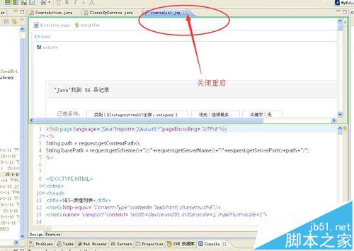 7、关闭已经启动的jsp文件,重启ta,看效果;