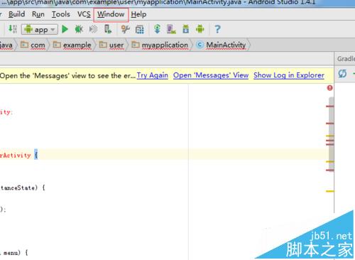 5、而想把自己布局改为自己的保存好的Android studio的布局方式,进行点击Android studio菜单中的”windows“菜单。