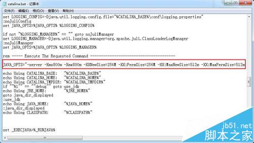 JAVA_OPTS="-server -Xms800m -Xmx800m -XXNewSize=256M -XX:PermSize=256M -XX:MaxNewSize=512m -XX:MaxPermSize=512m" 。
