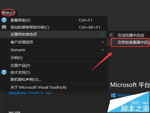 2、我们该如何安装离线帮助文档呢?首先,我们需要在visual studio2015的帮助首选项中选择”在帮助查看器中启动“。