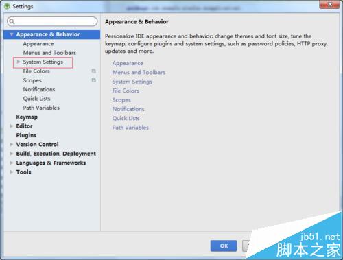 3、进入到了settings设置的界面中之后,进行选中appearance&behavior的选项之后。