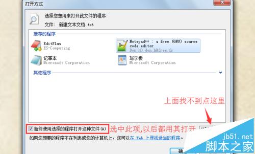 然后按照下图操作即可:勾上左下角"始终使用选择的程序打开这种文件" ->确认,ok!