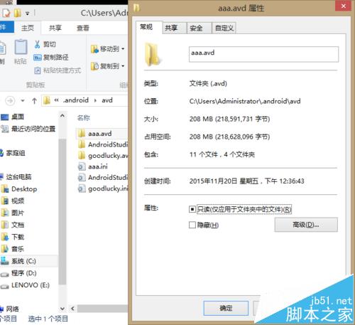 2、如果没有解决,搜到网上的方案,说是找到模拟器文件夹,单击右键选择属性,将只读选项勾选掉。