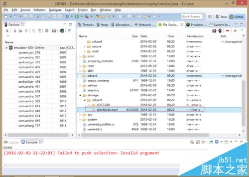 今天在写MediaPlay的demo,想把Mp3文件导入到sdcard时,报Failed to push selection: Read-only file system的错误。经过努力终于解决了