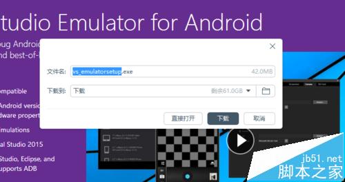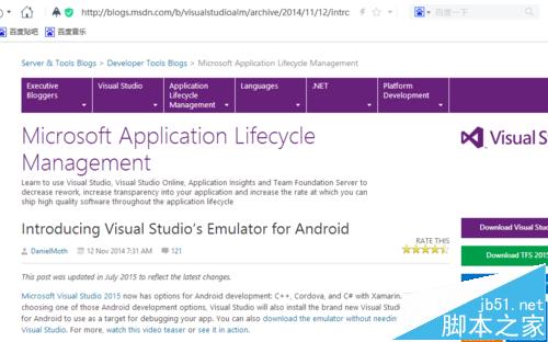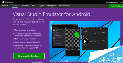 2、在百度搜索框注入Visual Studio Emulator for Android,下载官网插件,进行安装,上面提供下载
