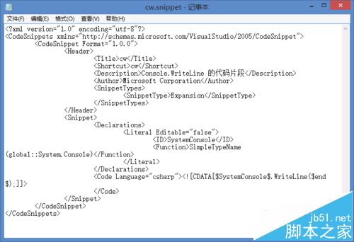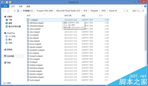 4、在这个文件夹下就可以看到VS中提供的代码段了