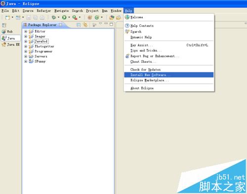 2、打开eclipse,点击菜单栏上的Help——Install New Software