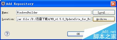 4、接着点击Archive,选择你下载好的zip文件,并在Name一栏随便输入一个名称,然后点击OK