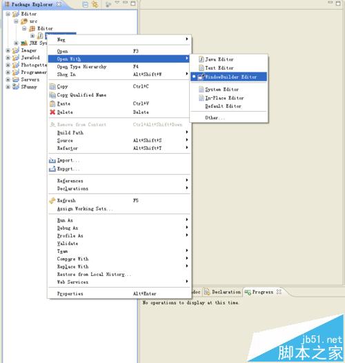 7、那么如何以可视化的方式来打开类文件呢?在类文件单击右键,选择——Open With...——选择WindowsBuilder