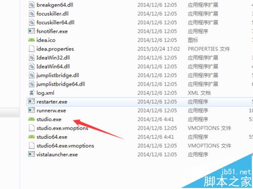 1、首先先进入到Android studio的安装路径中,然后进入到bin目录到,进行双击“studio.exe”启动应用程序。